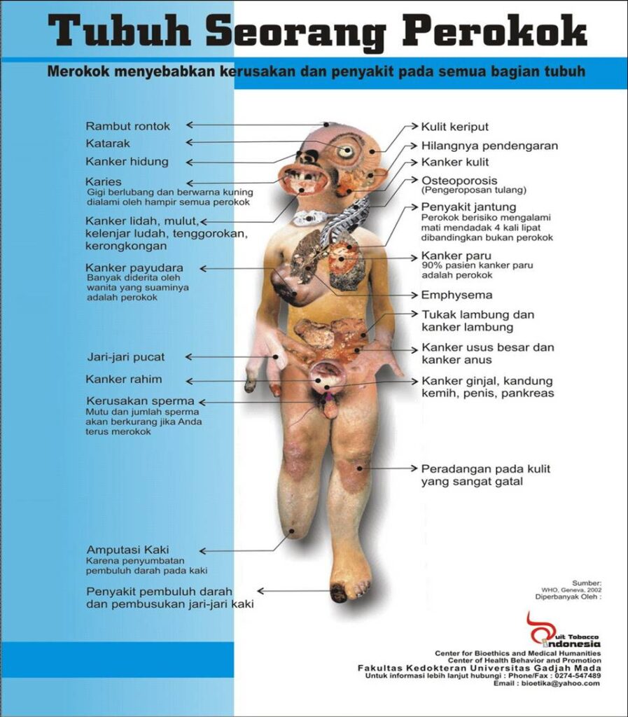 Silahkan lihat gambar di bawah ini sebagai gambaran betapa berbahayanya rokok untuk tubuh.